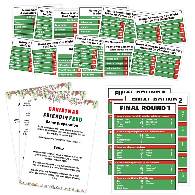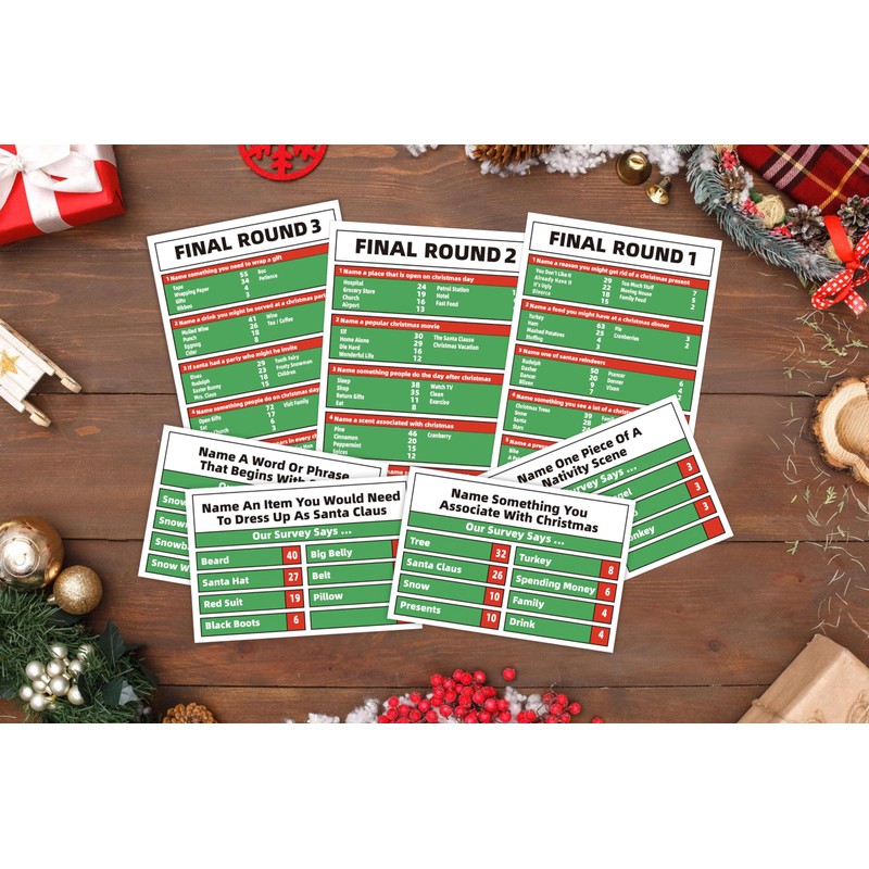 Tuyashua Christmas Friendly Feud Game, Family Game Night, Christmas Trivia, Family Friendly Quiz, Christmas Party Game for Family Activity - 12 Question Cards and 3 Quick Fire Final Rounds Cards (02)