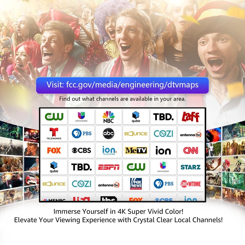 - 【360°to Receive HDTV Free Channels】With our innovative Smart IC Chip technology, the antenna receives signals in 360°, filtering out unwanted cellular and FM signals. Capture broadcasts in 4K, UHD, and 1080 HDTV for superior picture and sound quality.