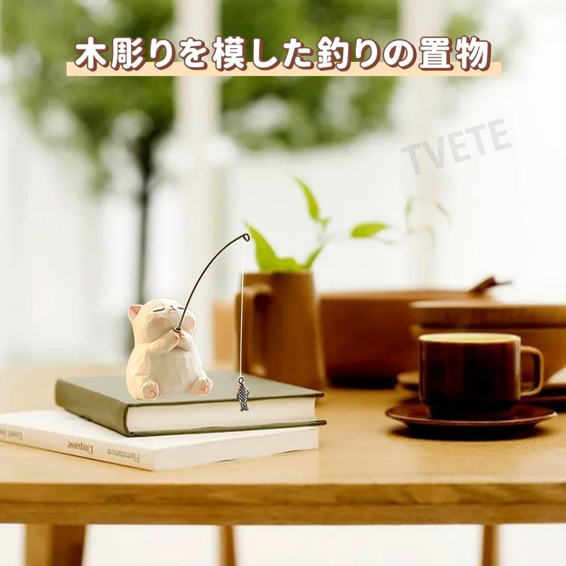TVETE Fishing Cat Figurine, Resin Wood Grain Pattern, Can Stand Incense Sticks, Waterproof, Durable, Flat Pan, Biotaupe, Figurine, Cute, Cat Object, Fishing Rod, Cat, Aquarium, Accessories, Gardening