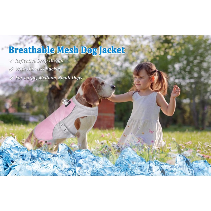 TVMALL Dog Cooling Vest Breathable Mesh Dog Jacket Summer Cool and Comfortable Dog Coat Adjustable With Reflective Strip Pet Clothes Suitable for Large Medium and Small Dogs (2XL, #New-Pink)