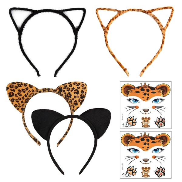 - 【Product Content】You Will Receive 4 Cat Ear Headbands And 2 Face Patches. The Headband Sizes Are About 12*16Cm And 16*21Cm Respectively, With The Colors In Black And Leopard Print; The Face Patch Size Is About 12*11Cm, With The Colors In Mixed Colors, Which Is Suitable For Creative Role-Playing And Party Decoration.