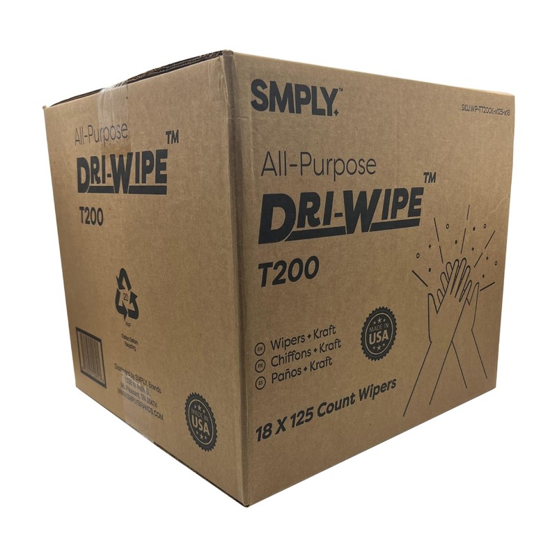 TW200 Dri-Wipe by SMPLY Brands, Pop-Up Box (Interfold) (18 Boxes (Kraft), 125)