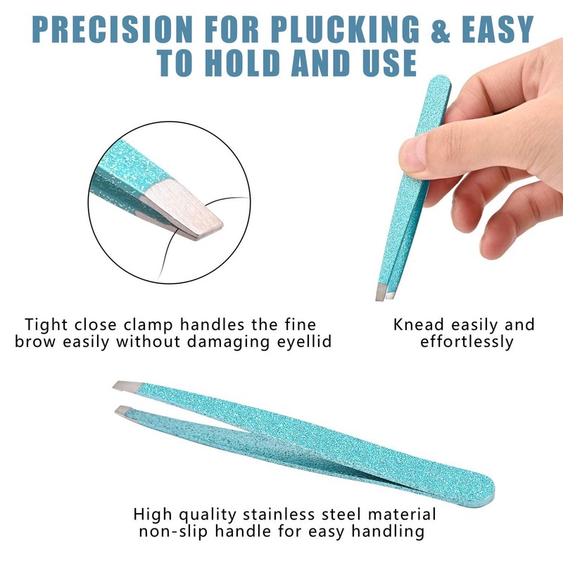 Tweezers Set 4-piece,Professional Stainless Steel Slant Tip and Pointed Craft Tweezers with Leather Case-Precision for Eyebrows,Ingrown Hair,Facial Hair,Blackhead and Lash Extension (Cyan)