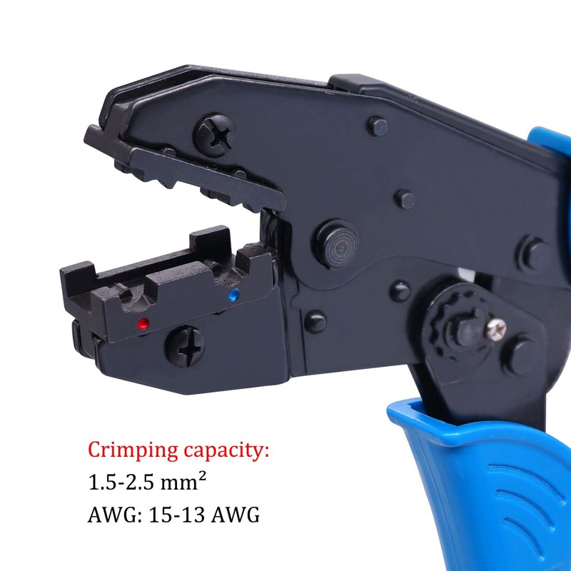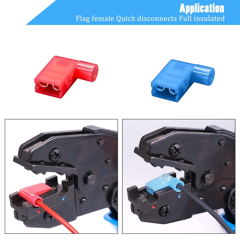 • This hand crimper has efficient ratcheting mechanism. Crimping is accurate and never damage the terminal,crimping is in one step. The crimping tool is suitable for nylon flag connector terminals.