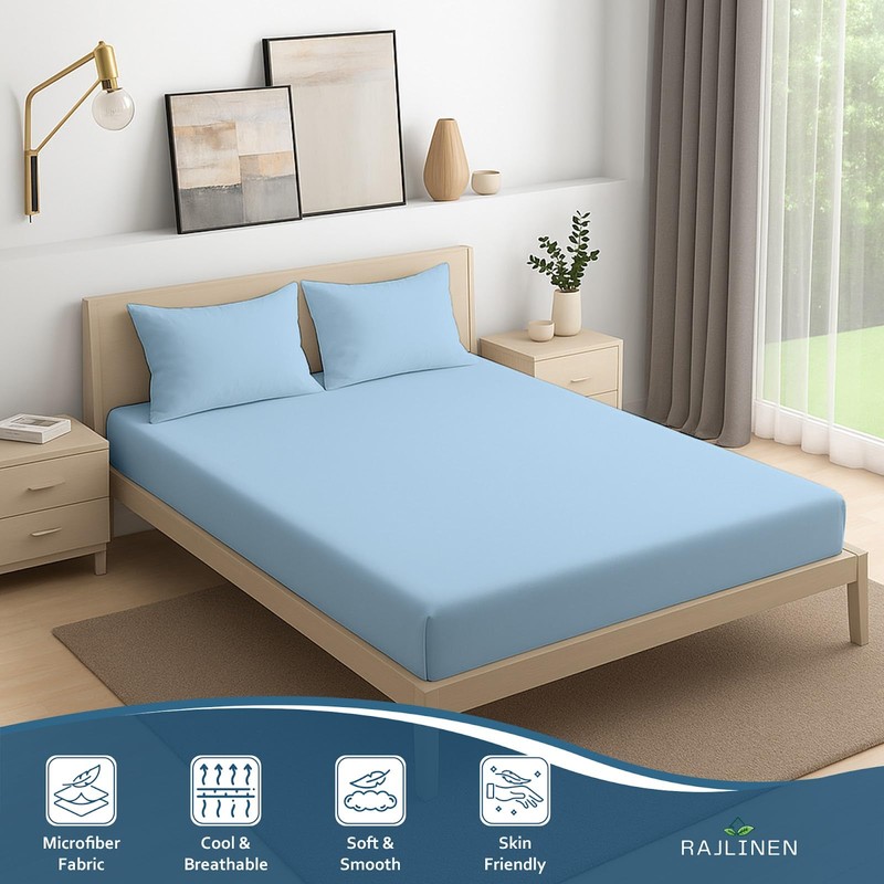 Twin Sheets Set, 100% Soft Microfiber, 3 Piece with Fitted Sheet and Pillowcases, Deep Pocket Fits Up to 15 Inch Mattress, Cooling, Breathable, Wrinkle Resistant, Hotel Luxury, Sky Blue