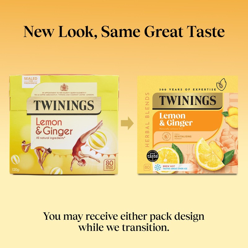 Twinings Lemon & Ginger 80 Single Tea Bags, 120g