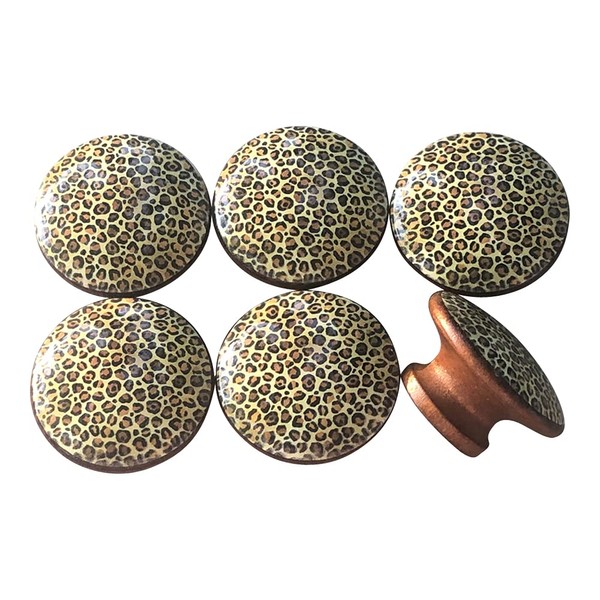 Twisted R Design Cabinet Knobs, Knobs for Kitchen Cabinets and Drawers, Matching Cabinet Knobs and Pulls, 1.5" Dresser Knobs (Set of 6 Cheetah Print Wood Knobs)