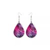 Twisted R Design Magenta and Purple Ink Wood Dangle Teardrop Print Earrings Jewelry