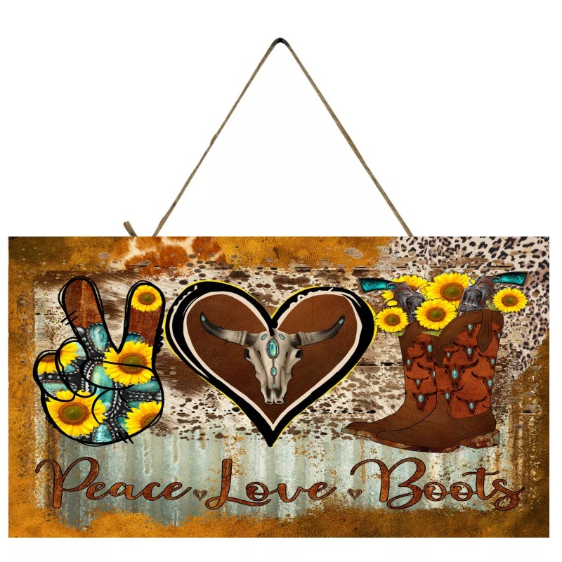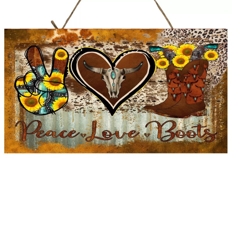 Twisted R Design Peace Love Boots Western Decor Printed Handmade Sign