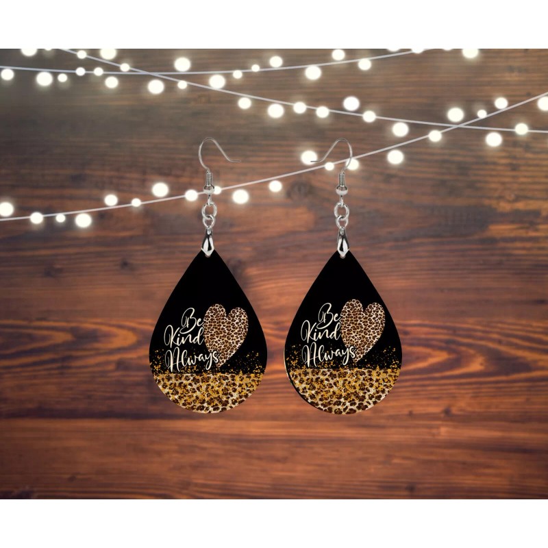 Twisted R Design Set of Be Kind Always Wood Tear Drop Earrings
