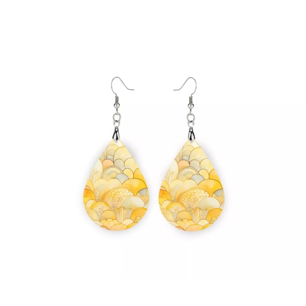 Twisted R Design Yellow Fans Wood Dangle Teardrop Print Earrings Jewelry
