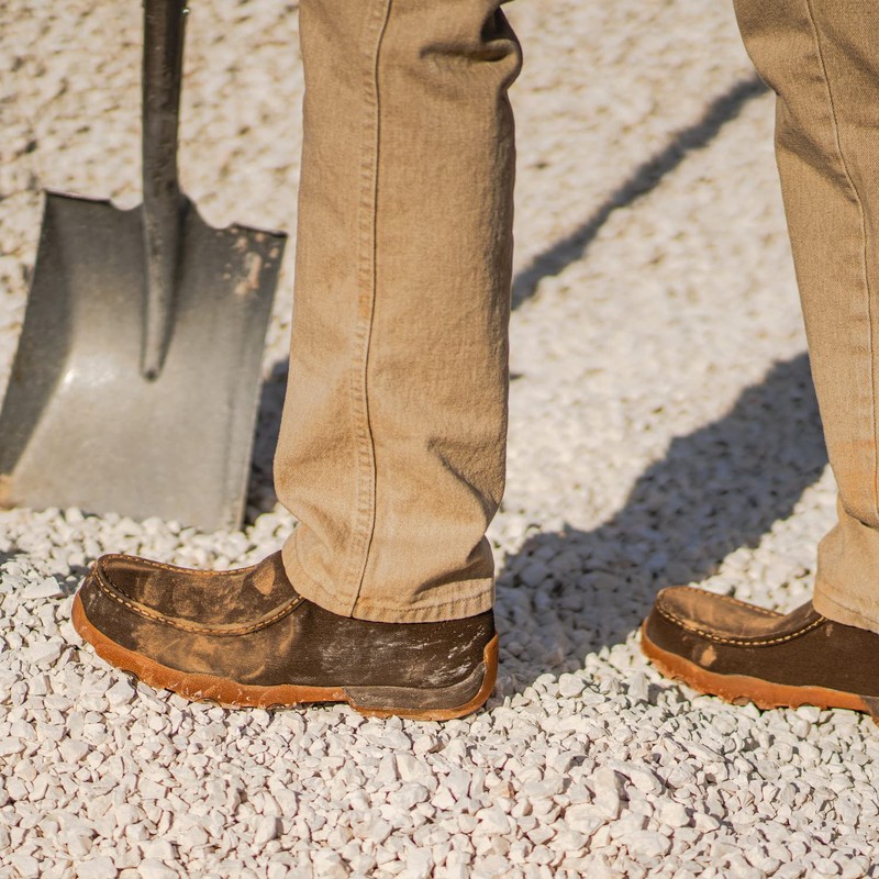 Twisted X Men's Steel Toe Chukka Driving Moc - Handcrafted Leather Safety Toe Shoes with Slip Resistant Outsole - Comfortable, Durable, and Stylish Lace-Up Boots, Distressed Saddle, 15 M