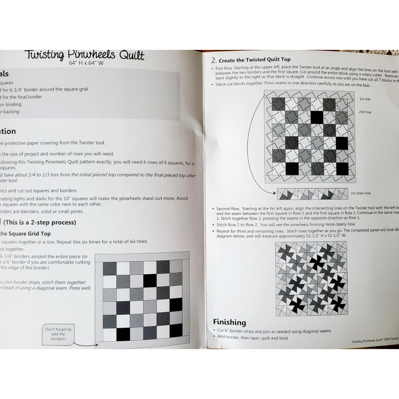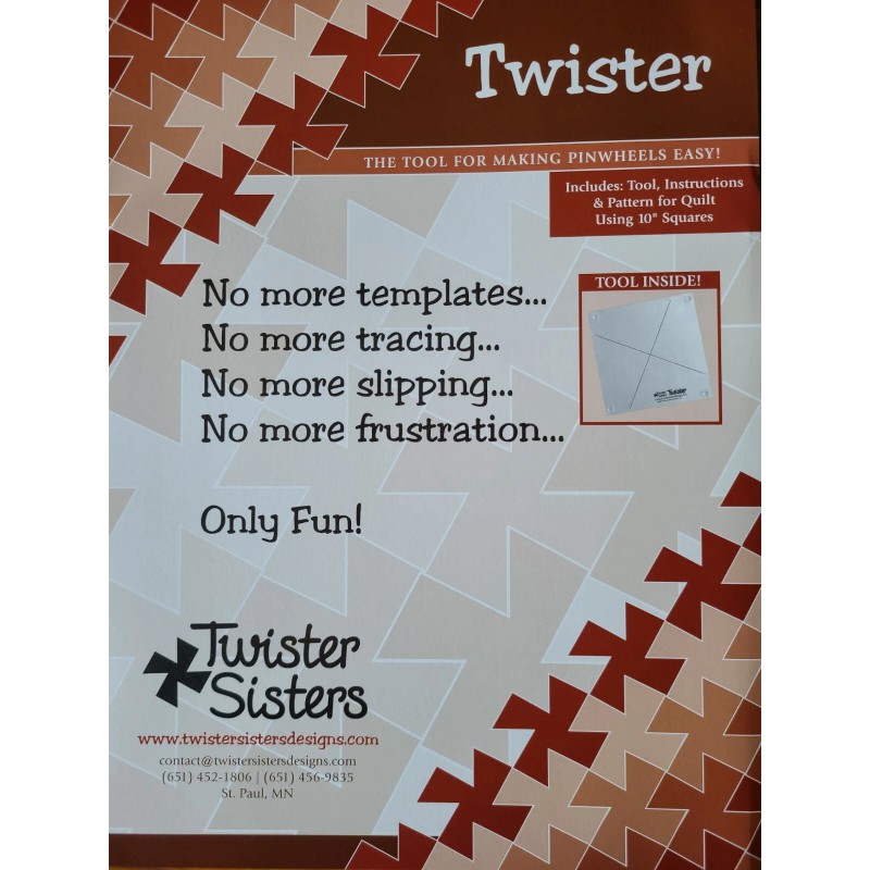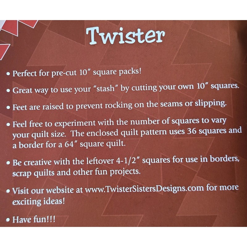 New Twister Tool Template by Twister Sisters. Includes a pattern for a quilt. Please see all the photos. Offering free shipping with USPS first class mail and a tracking number. Any questions please contact me.