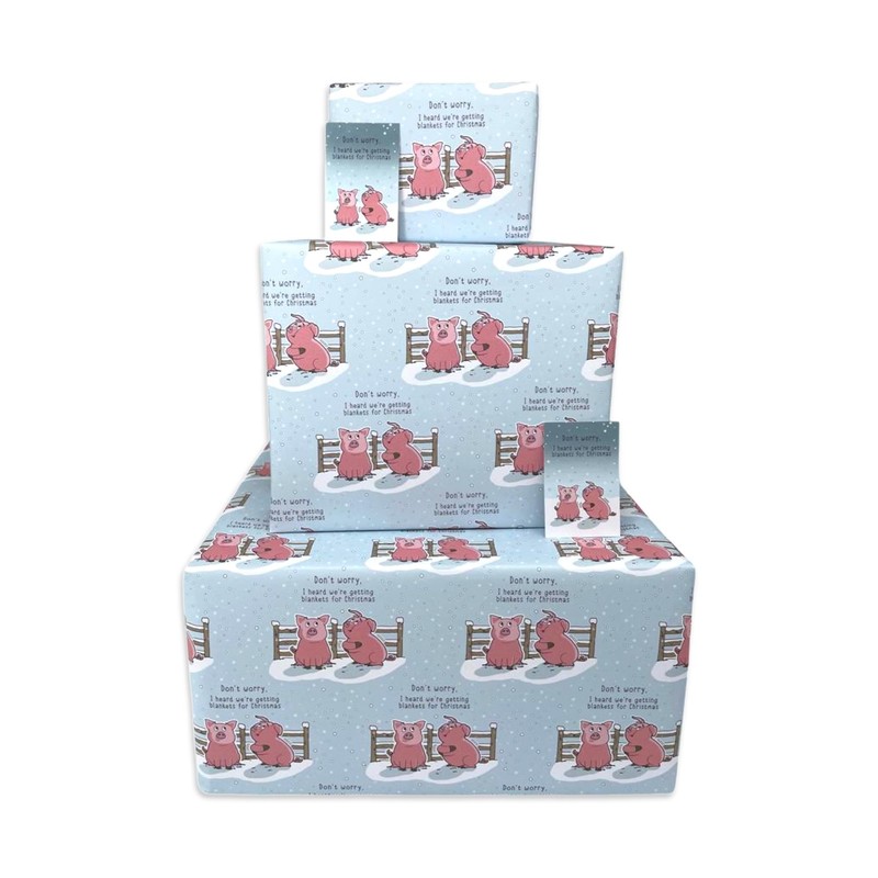 Twizler Funny Christmas Wrapping Paper - Pigs In Blankets - 4 Sheets & 4 Tags - 70cm x 50cm Folded Sheets - Funny Xmas Gift Wrap