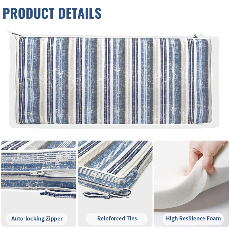 TWLEAR Outdoor Bench Cushion, Patio Furniture Cushion 48 x 18 x 3 Inch, Water Resistant Garden Sofa Swing Pad Settee Loveseat Couch Replacement Cushion, 1 Pack, Stripe Layered Blue
