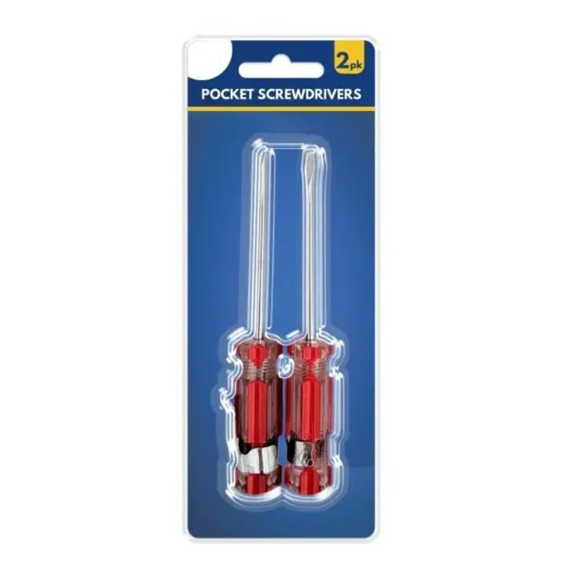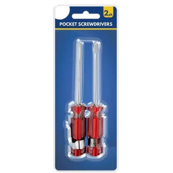 Keep these handy pocket screwdrivers within reach for all your quick-fix needs. This practical 2-pack features durable red-handled screwdrivers with comfortable grips for precise control. Perfect for tackling those everyday household tasks, from tightening loose cabinet handles to assembling flat-pack furniture. The compact size makes them ideal for storing in kitchen drawers, toolboxes, or even your car's glove compartment. Their versatile design suits both Phillips and flathead screws, making them essential tools for any home. The sturdy construction ensures reliable performance, while the portable size means you'll always have a screwdriver when you need one. These pocket screwdrivers are a practical addition to your DIY arsenal, combining convenience with functionality for those impromptu repair jobs.
