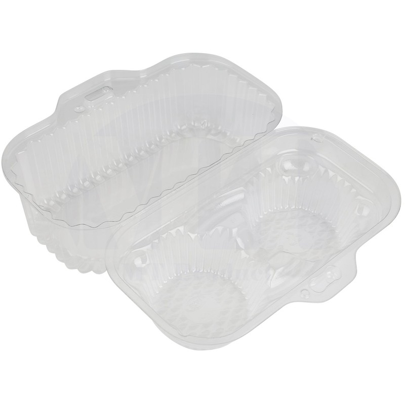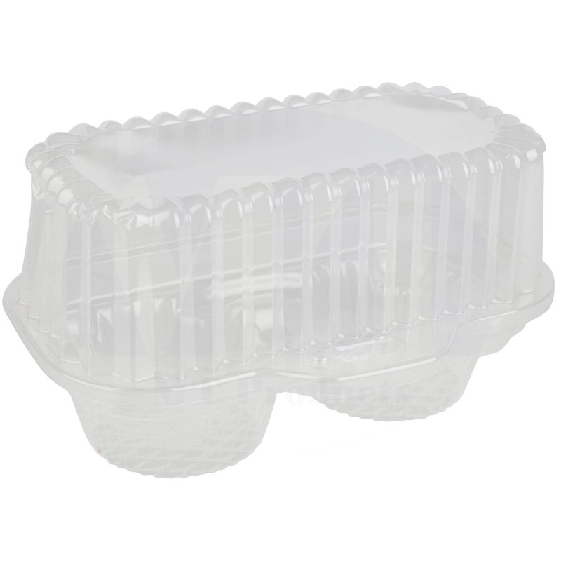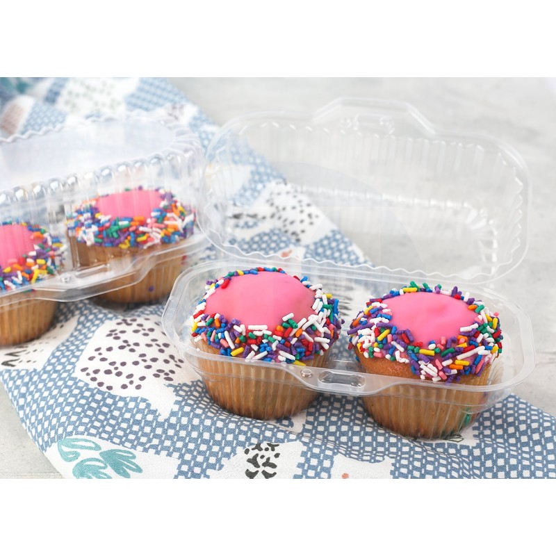 Two Compartment Hinged Clear Cupcake or 2 Muffin Takeout Container by MT Products - (15 Pieces)
