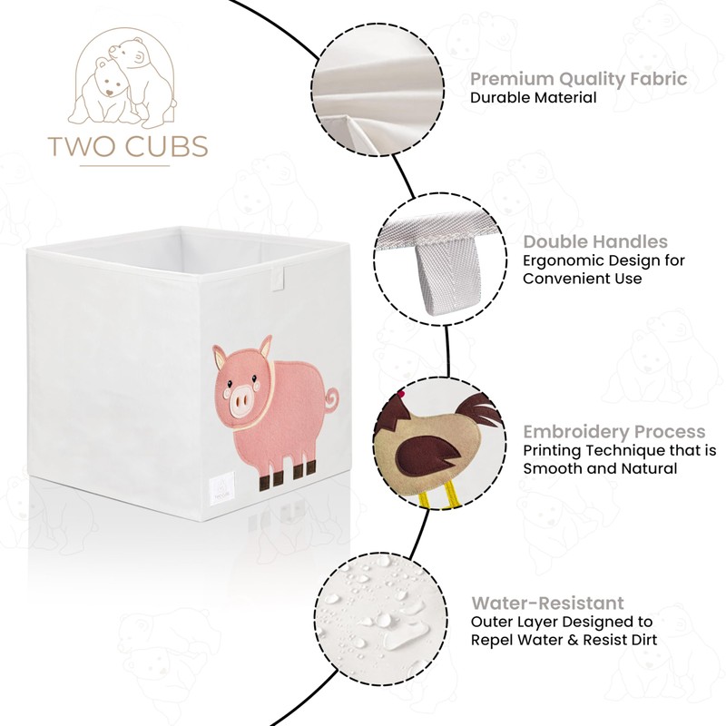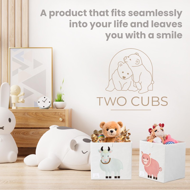 Two Cubs Storage Box - Kids Toys Organizer (13"x13"x13"), White, Foldable Toy Storage Bin, Nursery Storage Basket, Cube Organizer for Kallax Shelves, Durable, Collapsible, Farm Animal - Goat