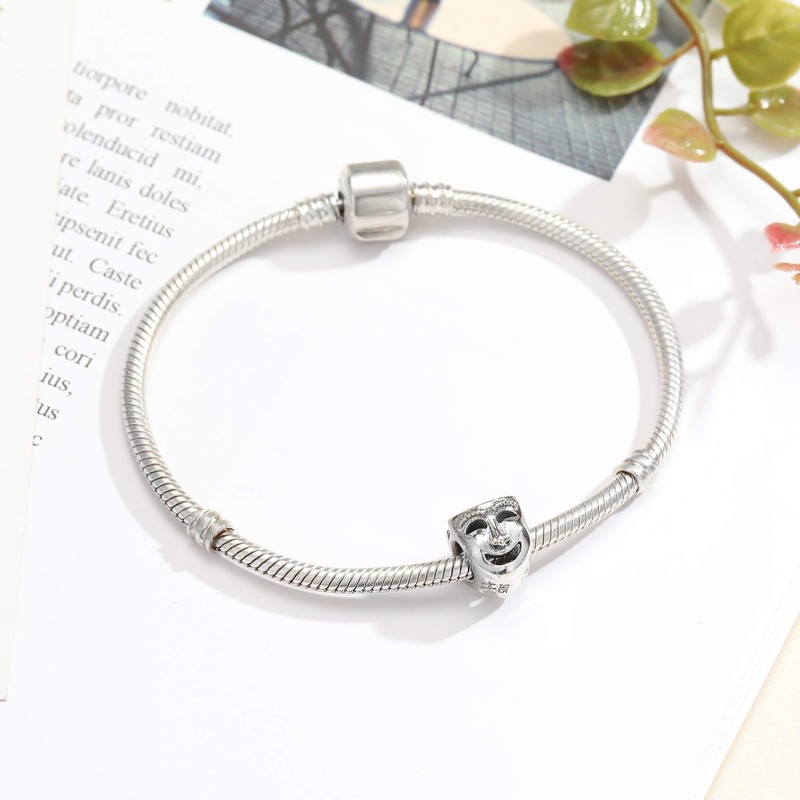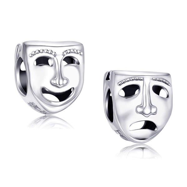 Two Face Tragedy Theater Mask Charm 925 Sterling Silver Bead fits European Band Bracelet or Necklace