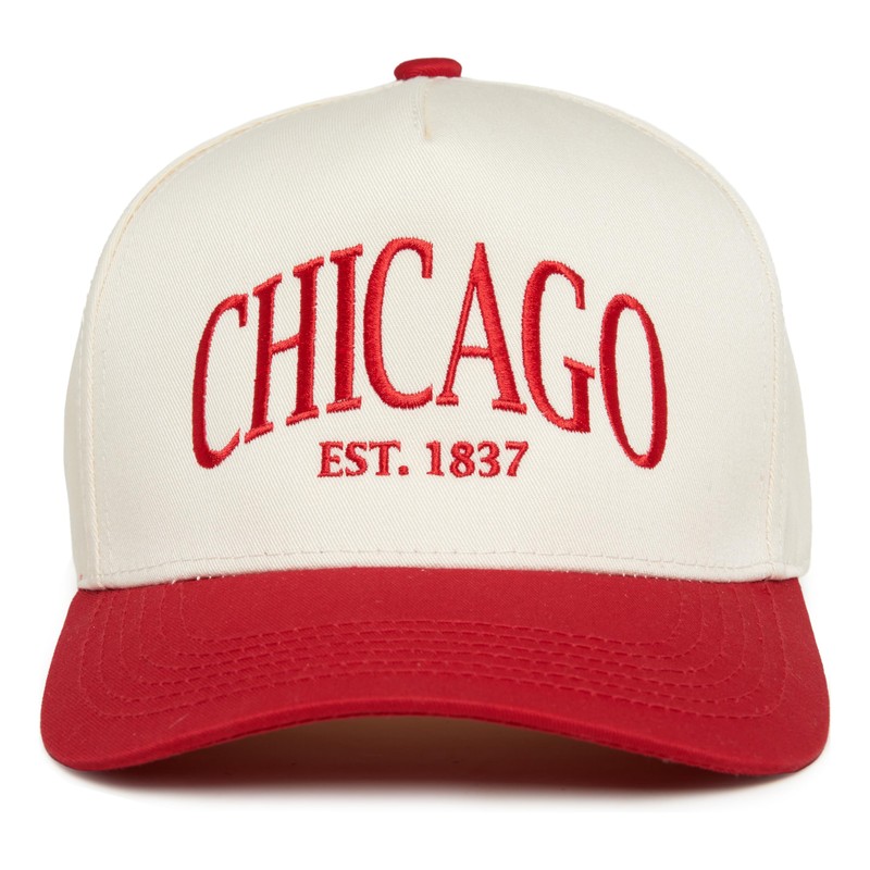Two Tone Vintage Snapback Hat - Chicago - Red/Beige