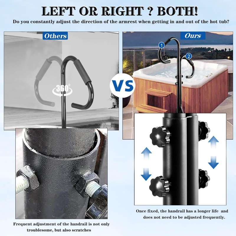 - VERSATlLE USE:Suitable for most standard height and design hot tubs, the handrails are equipped with non-slip grips for effective grip safety.