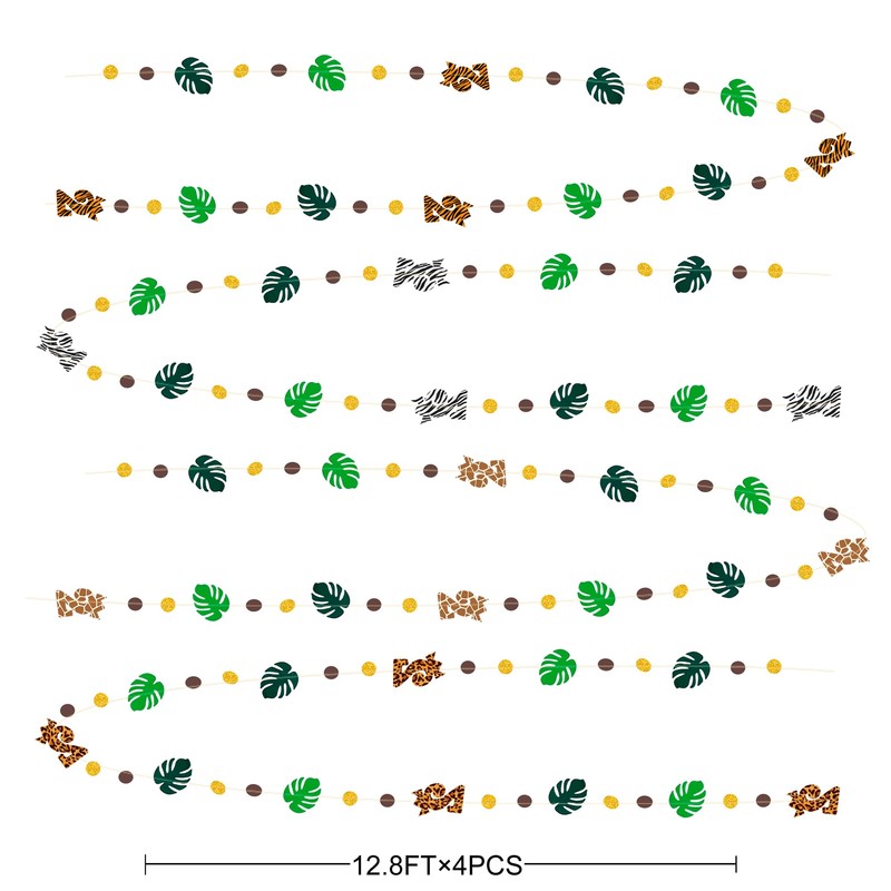 4 set of two wild birthday party garland banner,each string is 12.8 feet/3.9 meters, Total is 15.6 meters/51.2 feet.