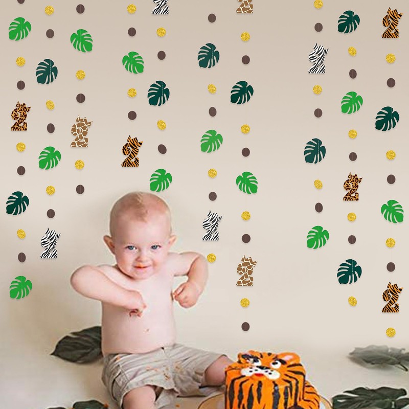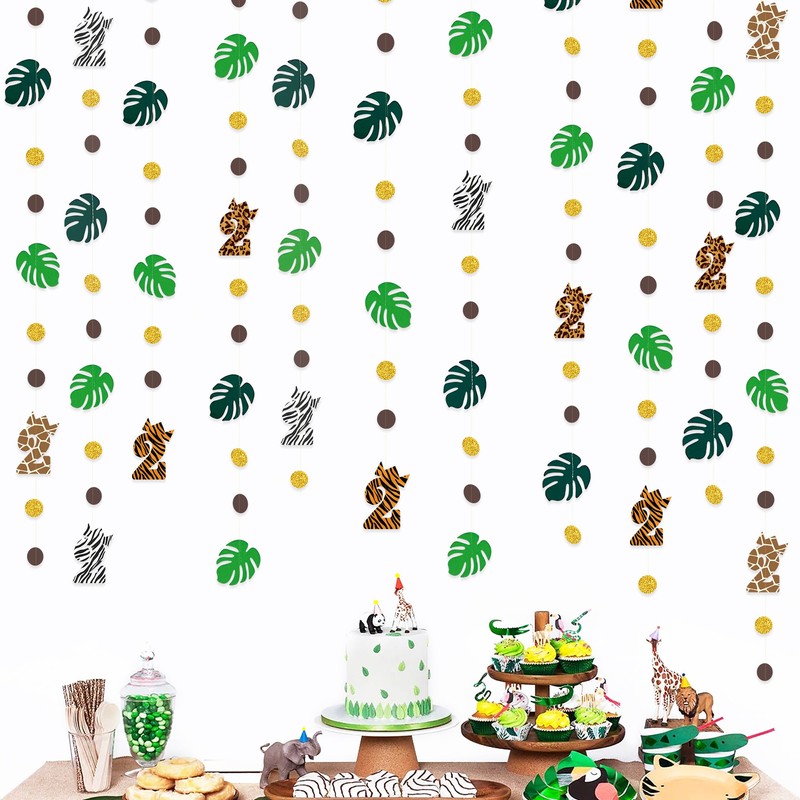 - 🐯Environmental Material: Our safari 2nd birthday hanging streamer are made from double sided card stock with exquisite printing plus glitter gold dots,then carefully hand-made and machine-sewn together with thread.durable and reusable.