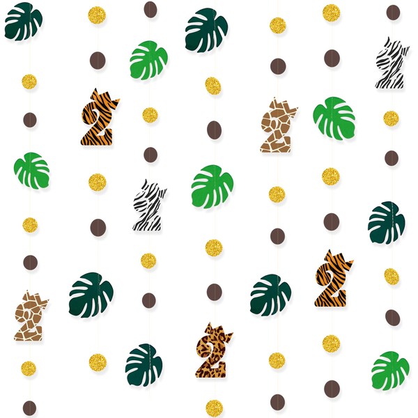 - 🦁Special Design: Adorable animal texture 2 sign design with brown dots glitter gold dot and jungle palm leaf, This decorations garland kit makes an attractive backdrop for your videos and photos.