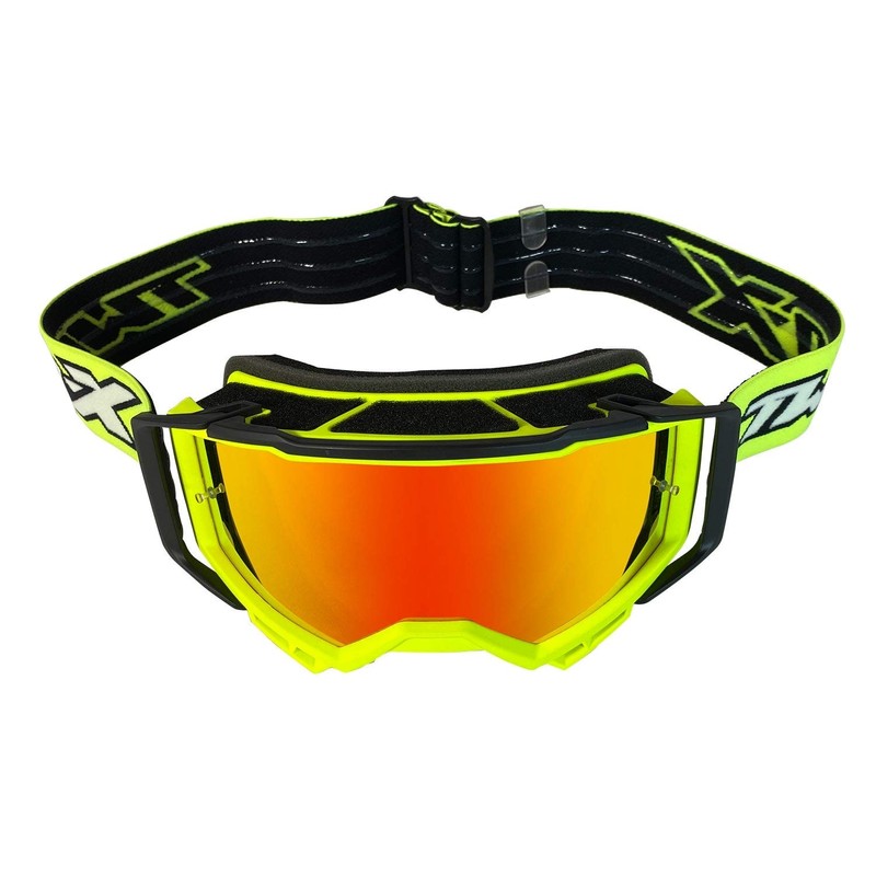TWO-X Cross Goggles - Motocross Goggles with Mirrored Iridium Glass - Motorcycle Goggles - Enduro & Downhill - Safety Goggles - Atom - Vortex Neon Yellow