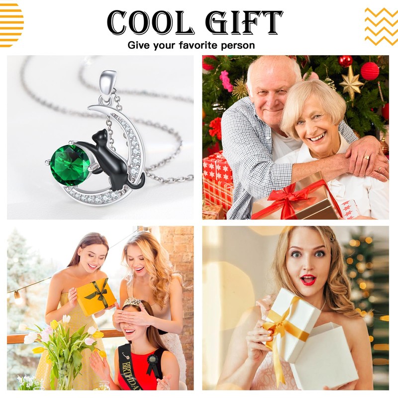- Material: The black cat necklace is made of 925 sterling silver with Emerald,no nickel-free, no lead, no cadmium and hypoallergenic, especially suitable for people with sensitive skin