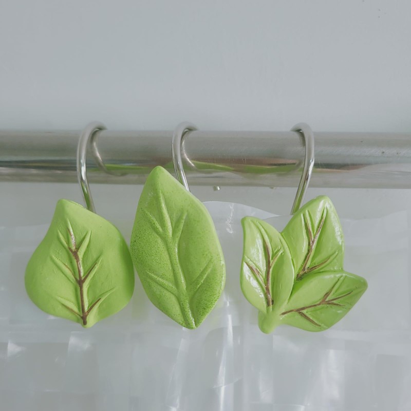 - Twofishes Green Leaves Shower Curtain Hooks S/12 Decorative Rust Proof Resin Shower Curtain Rings Pack of 12
