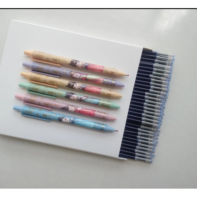 - 1: The package contains 80 pcs of blue gel pen refills, 0.5mm retractable gel pen refills, and 6 retractable gel pens are sent (6 pen styles are sent randomly,Note: the refill of an extra send pen is black)