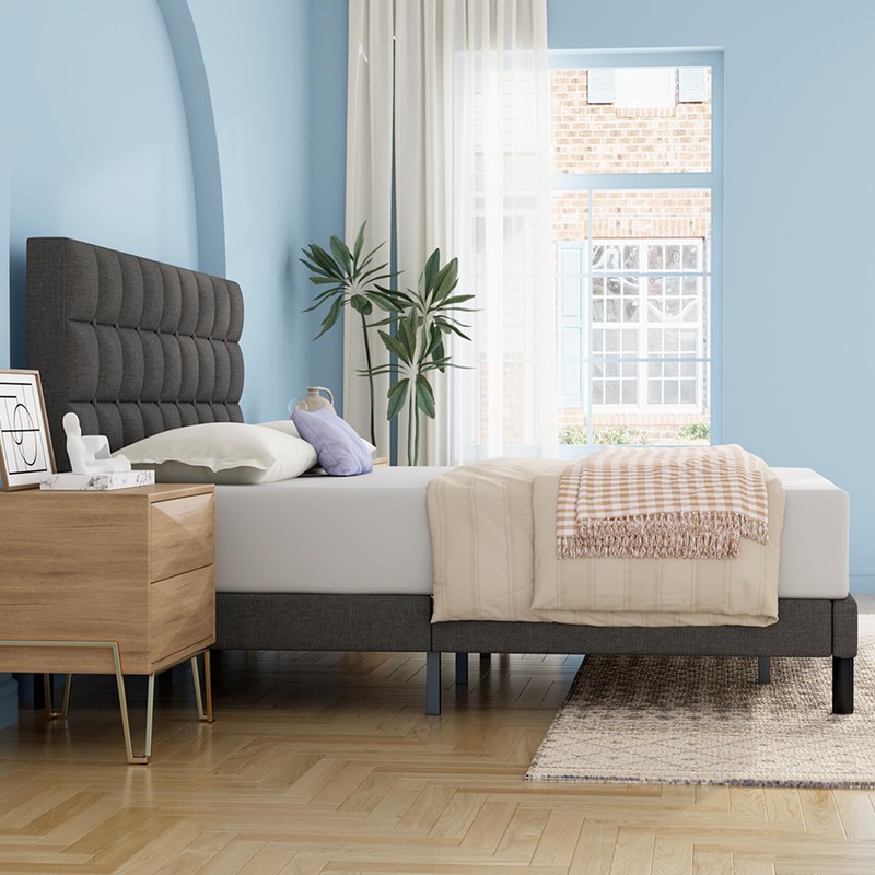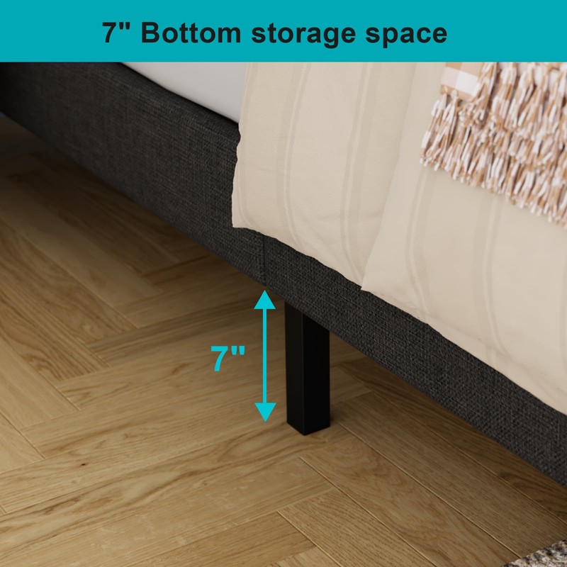 • UPHOLSTERED BED FRAMES:King bed frames with headboard material is made of high quality linen fabric;Simple and atmospheric appearance,comfortable fabric can bring a relaxing rest environment and atmosphere