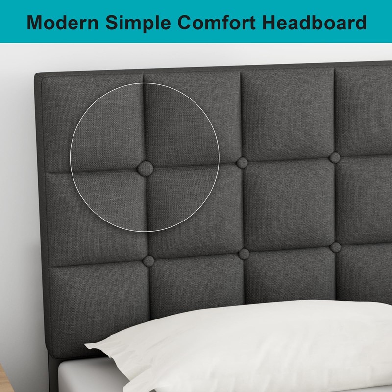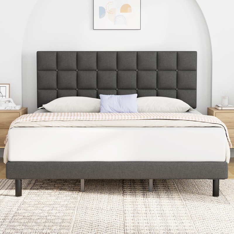 Twolike King Bed Frames with Headboard,Modern Upholstered Platforms bed,and Strong Wooden Slats.No Box Spring Required. Easy Assembly,Dark Grey