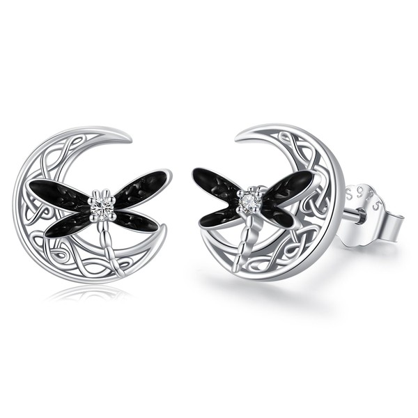 Twoowl Dragonfly Earrings 925 Sterling Silver Black Celtic Stud Earrings Hypoallergenic Irish Earrings Celtic Jewellery Gifts Birthday Christmas for Women Girls