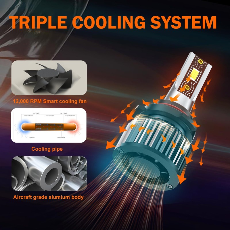 - Extended Lifespan:These bulbs have a life expectancy of over 50,000 hours. Aircraft-grade aluminium bodies and a highly efficient cooling system with a 15,000 RPM silent turbo fan ensure effective heat dissipation and durability