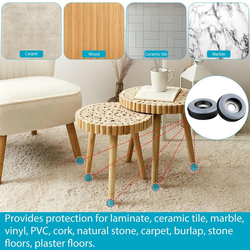 - Widely used: Teflon material has a high load capacity and is also suitable for heavy furniture. It can be used for chairs, tables, armchairs/sofas, bar stools, etc. SUITABLE FOR MOST FLOORS: Used as floor protector for laminate, tile, marble, vinyl, PVC, cork, natural stone, carpet, rough tile, stone floor, paving.