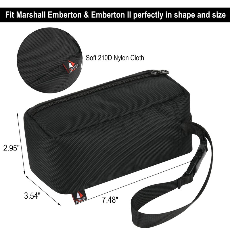 - Perfect Fit: Tailor-made storage bag for Marshall Emberton & Emberton II Portable Bluetooth Speaker. Internal space 1:1 Build, the reticulated pattern design of the shell matches perfectly with the bluetooth speaker. Easily carry the Marshall Emberton & Emberton II speaker.