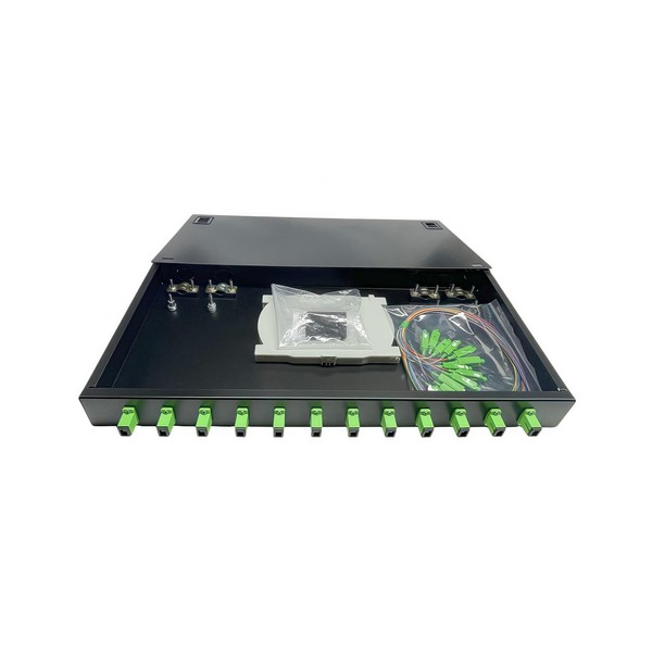 TXWTXPJ-12-Port SC APC Singlemode Fiber Enclosure, 12-Core Rack Mount Enclosure with Splice Trays, Couplers & Pigtails, 19" Cabinet Compatible