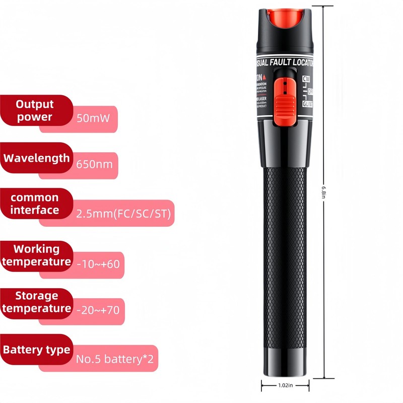 • 【Excellent Function】This VFL device is portable and easy for a field test with multiple functions such as constant output power,multi-interface adaptation,lower battery warning,long battery life,and long-distance detection.