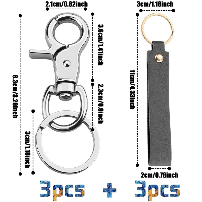 - Practical set: you will receive 3 pieces carabiner hooks with swivel metal and 3 pieces key rings leather, the carabiner key rings with swivel are 6 cm / 2.36 inches long and 2 cm / 0.78 inches wide, leather key rings are 14 cm / 5.51 inches long and 2 cm / 0.78 inches wide. TXXATX keyring carabiner is compact and lightweight, easy to use and carry.