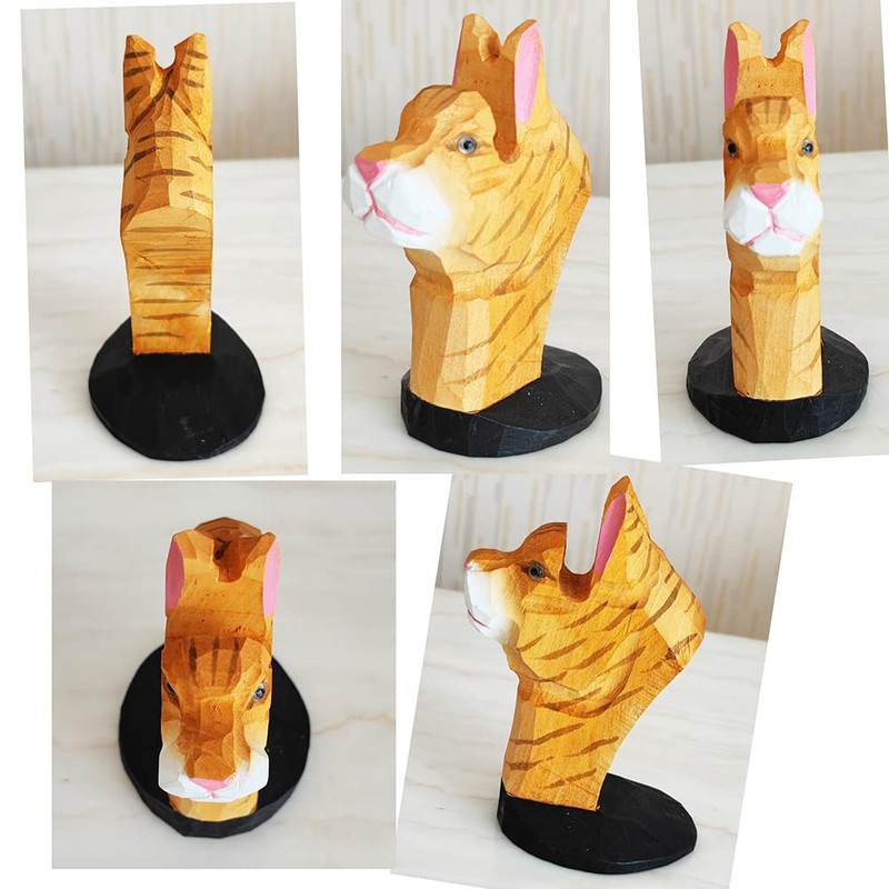 TXXMA Wood Eyeglass Stand Handmade Carved Spectacle Holder Sunglass Holder Stand Ginger Cat Glasses Display
