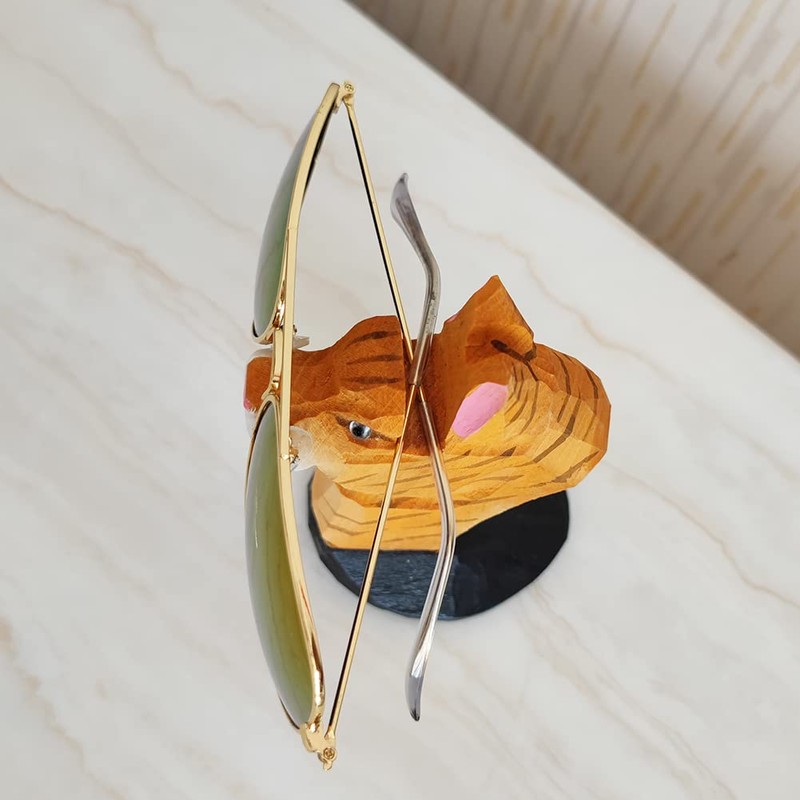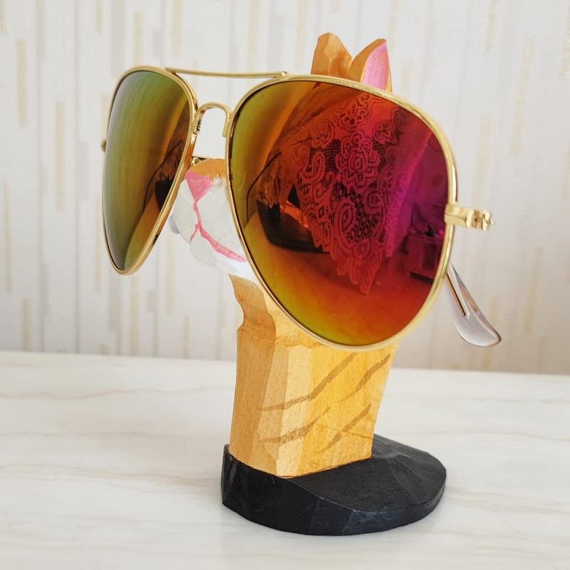 - The Ginger cat eyeglasses holder stand hand carved with finest bass wood, sprayed with yellow natural paint, strong, healthy and safe.