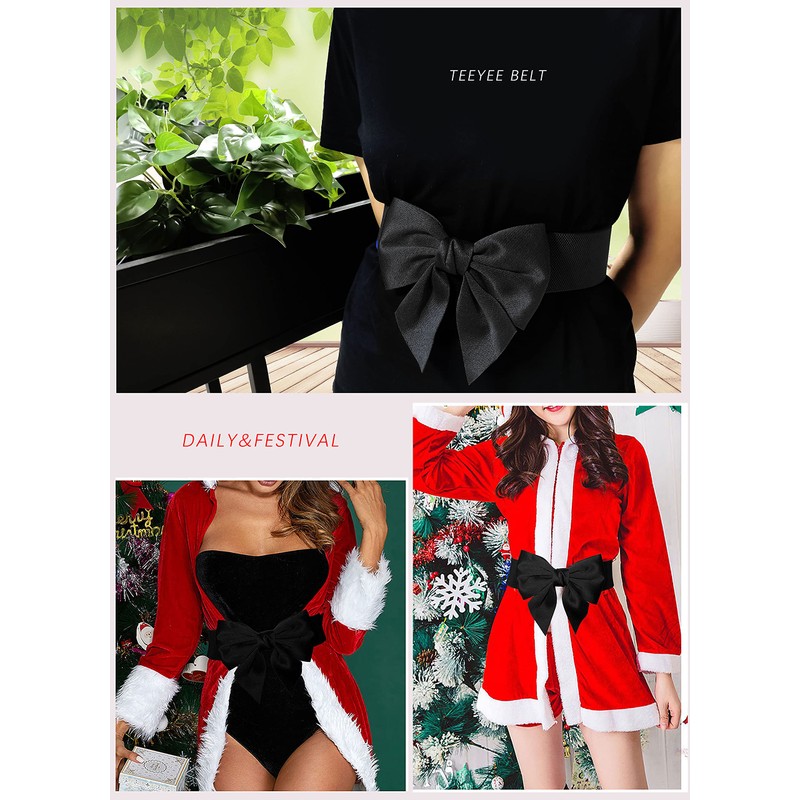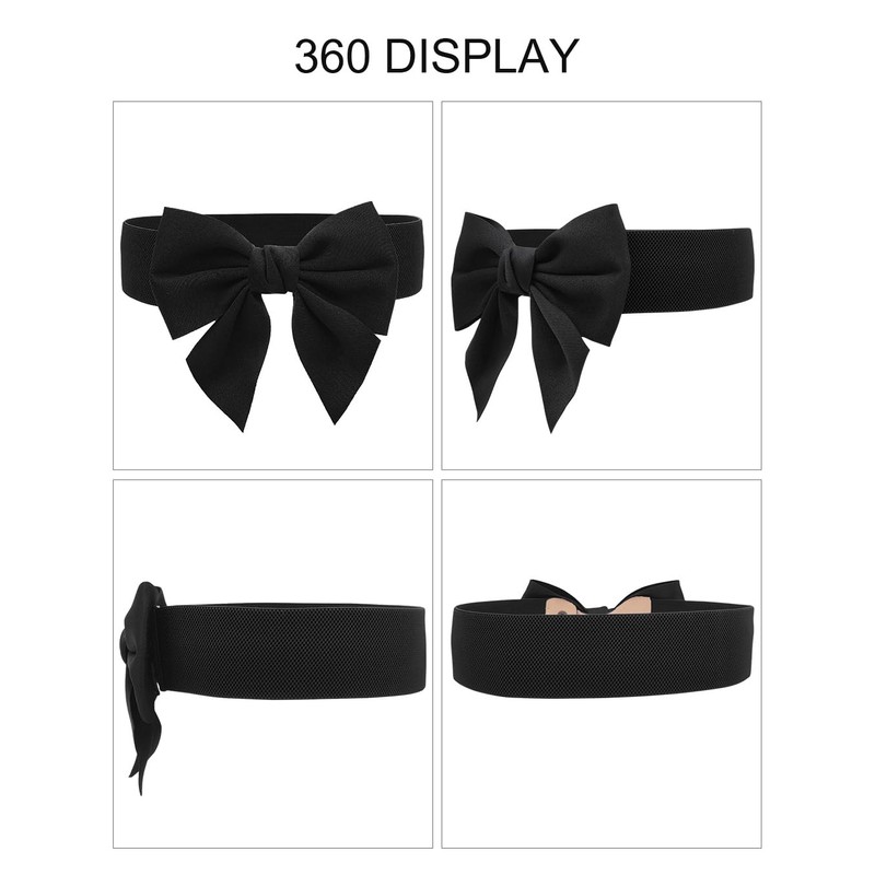 Ty Women Girls Elastic Bow Design Waist Belt Dress Decorations (L, black)