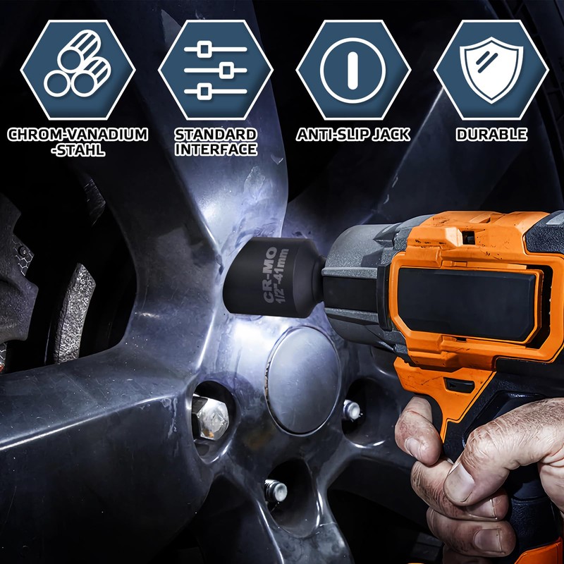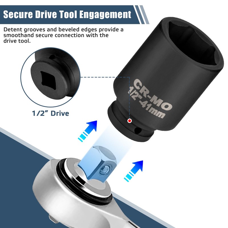 - Universal connection size: our 41 mm nut hexagon socket is equipped with a 1/2 inch square connector and compatible with most wrenches, torque wrenches and impact wrenches