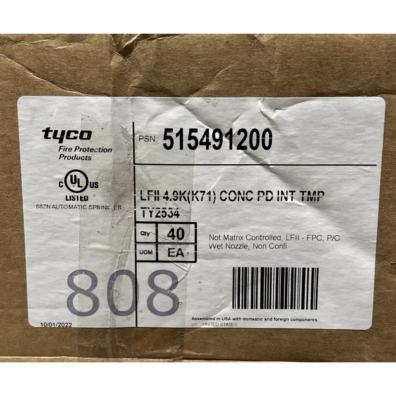 TYCO FIRE TY2534 Brass (LFii 4.9K) NEW