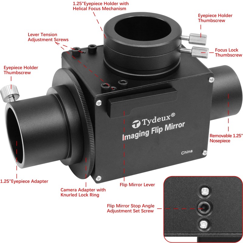 Tydeux 1.25" Astrophotography Flip Mirror with Eyepiece Adapter - The flip Mirror for Precise Focusing