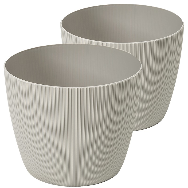Tymar Flower Pot, Pack Of 2, Round Shape, Planter (2 Pack), Beige, Diameter 25.5 cm