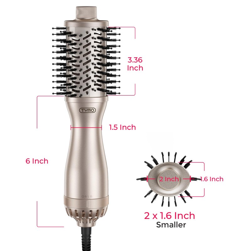 TYMO 2.0 Hair Blow Dryer Brush - Oval Round Blowout Hot Air Brush, One Step Volumizer, Upgraded 2 Inch Barrel for Short Hair, 3X Faster Drying, 0.6 lb Lightweight, Straightener Curling in One, Gold