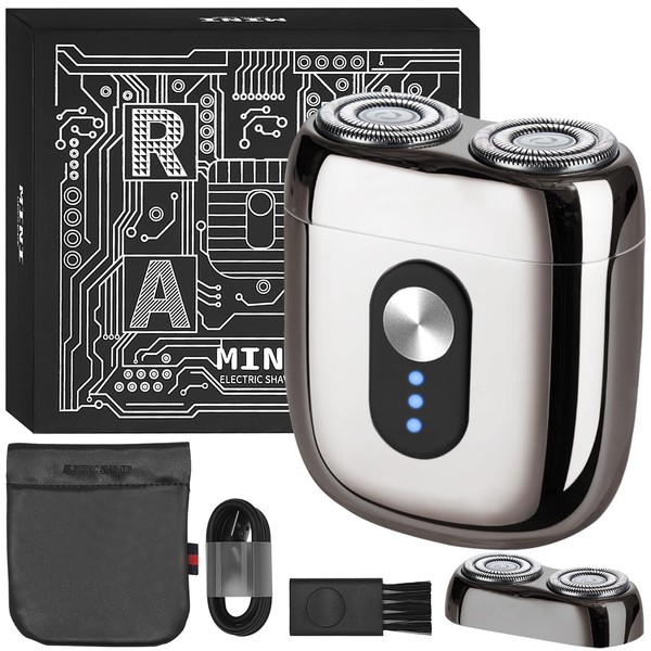 シェーバーメンズ 電動 髭剃り 小型 電動 電気カミソリ ひげそり マグネット仕様 Type-C充電式 LEDバッテリー残量表示 回転式 IPX7防水 水洗い/お風呂剃り可 男性 プレゼント 旅行/出張/オフィス/車内 収納袋付き 取扱説明書付 (グレー)